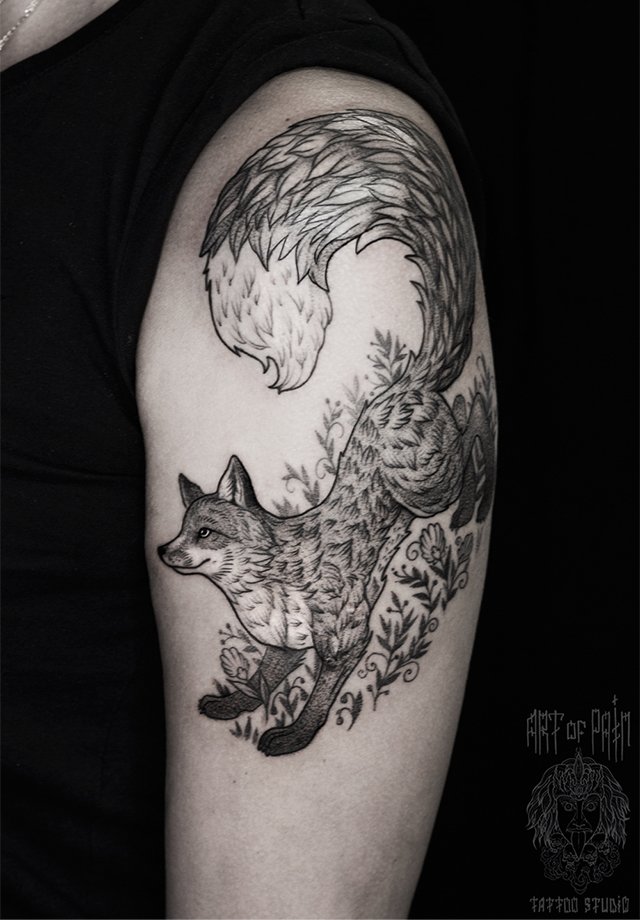Татуировка женская графика на плече лиса 2096