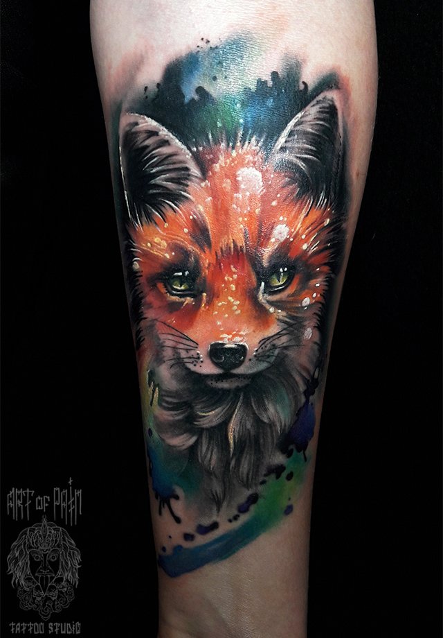 Татуировка женская реализм на предплечье лис 2107