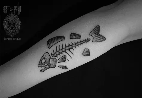 Татуировка женская дотворк на предплечье рыба 2168