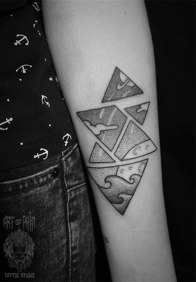 Татуировка женская дотворк на предплечье пейзаж 2181