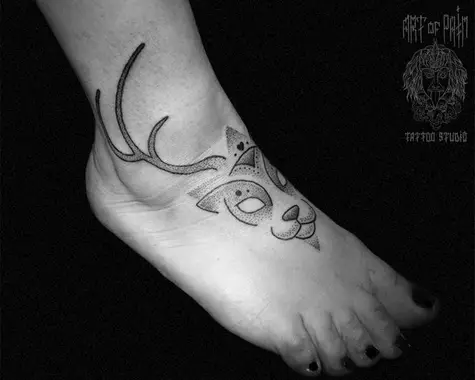Татуировка женская дотворк на ноге олень 2183