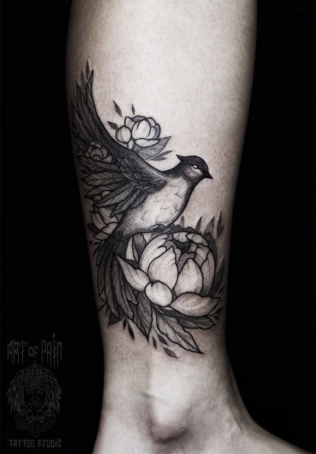 Татуировка женская графика на щиколотке птица 2360