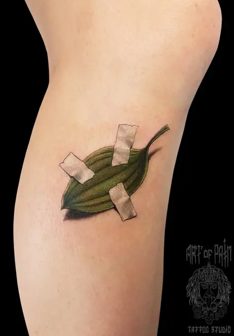 Татуировка женская реализм на голени подорожник 2376