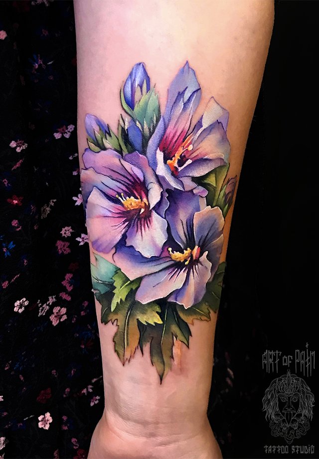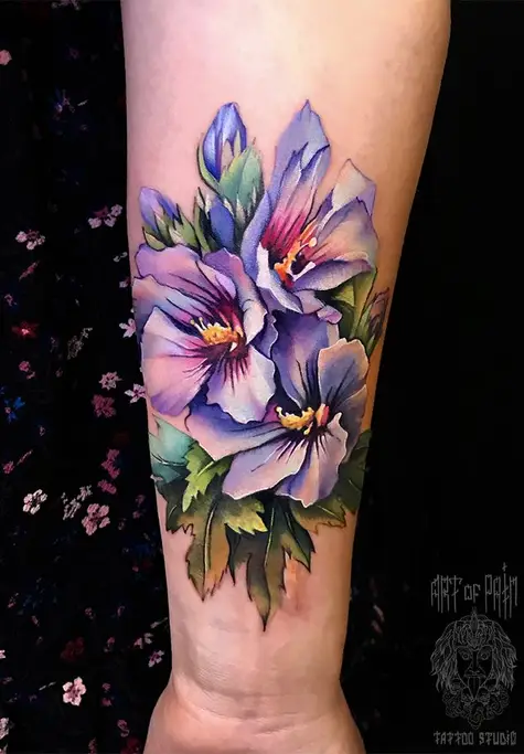 Татуировка женская реализм на предплечье цветы 2379