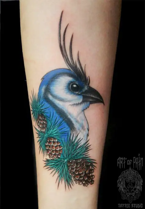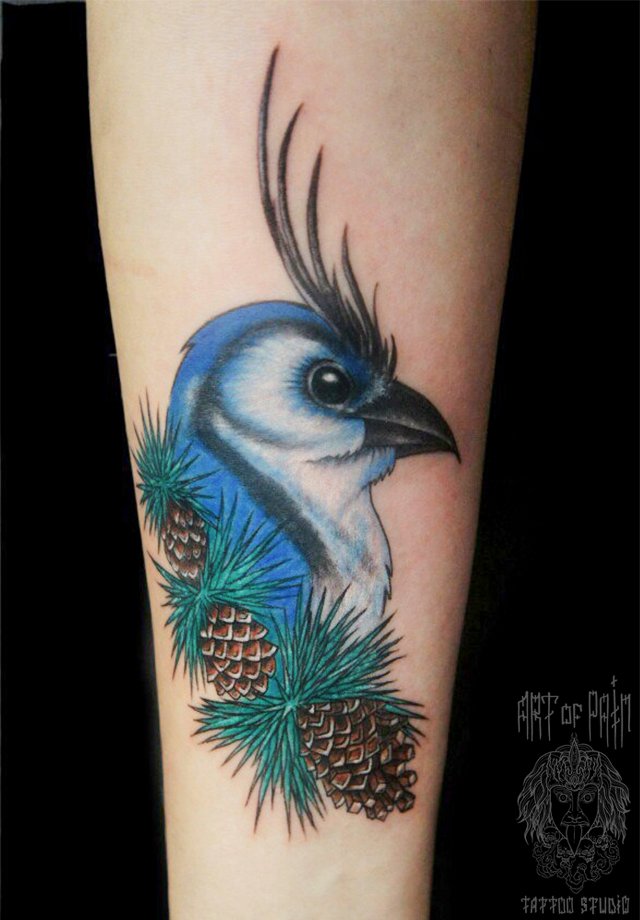 Татуировка женская нью-скул на предплечье птица (Анастасия Родина) 2412