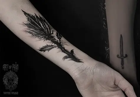 Татуировка женская black&grey на предплечье цветок 2452