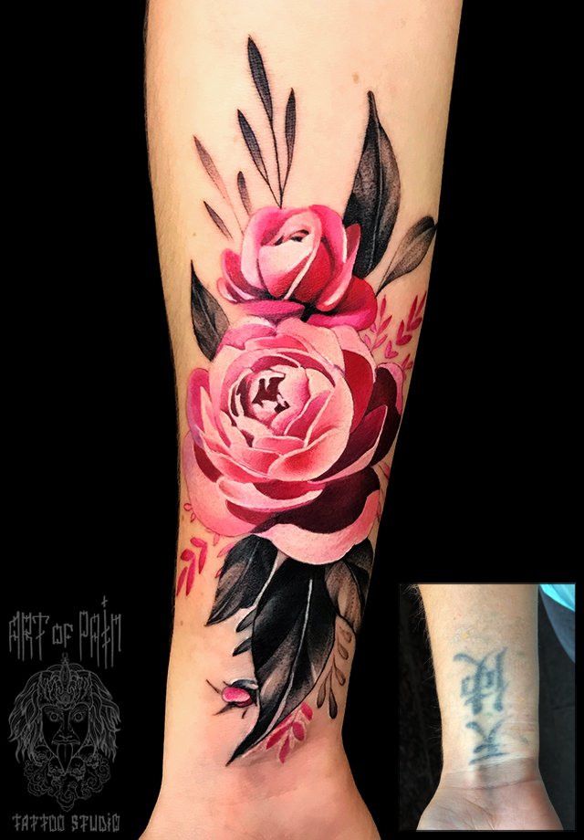 Татуировка женская реализм на предплечье роза кавер 2484