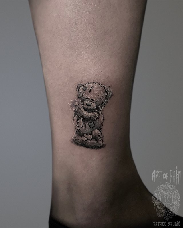 Татуировка женская реализм на щиколотке мишка Тедди 2554