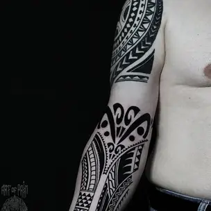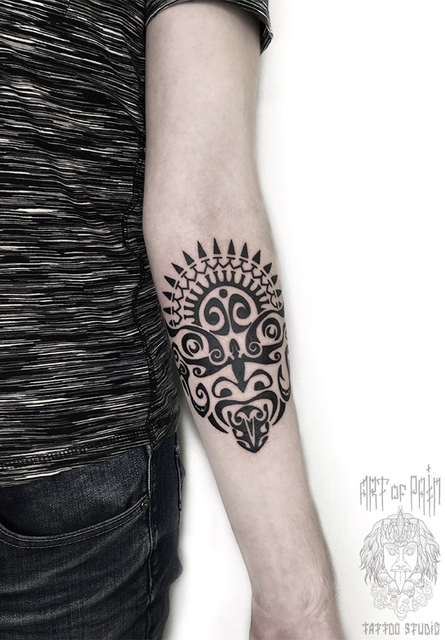 Татуировка женская полинезия на предплечье маска 2568