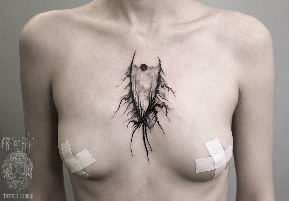Татуировка женская black&grey на груди черный шар 2586