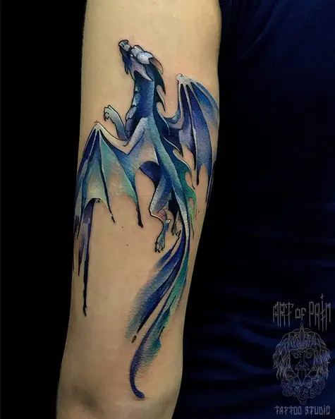 Татуировка женская нью-скул на плече дракончик 2591