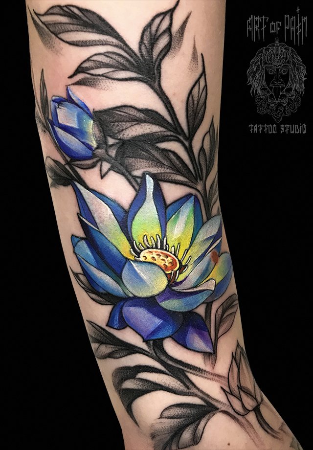 Татуировка женская нью-скул на плече лотос 2605