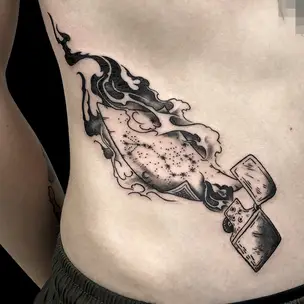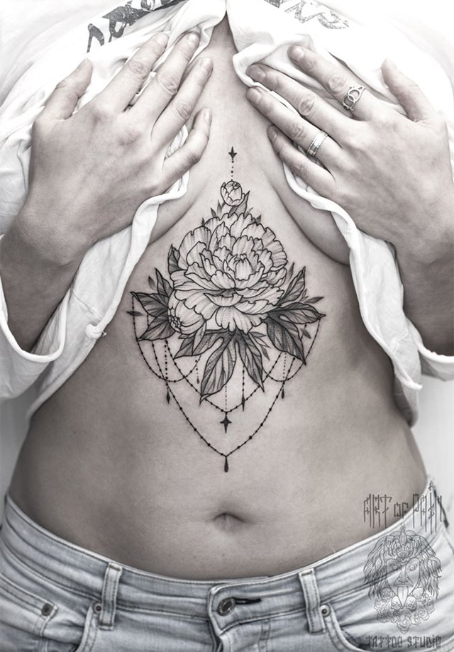 Татуировка женская графика на животе цветок и узор 2640