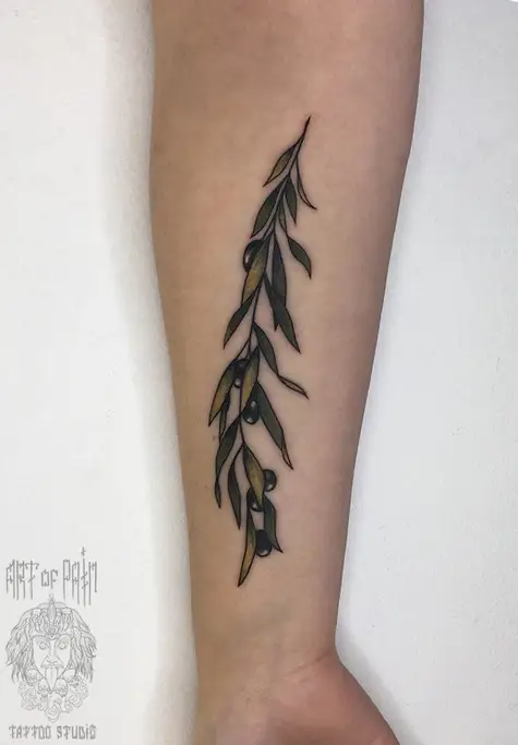 Татуировка женская нью-скул на предплечье веточка оливы (Анастасия Родина) 2651