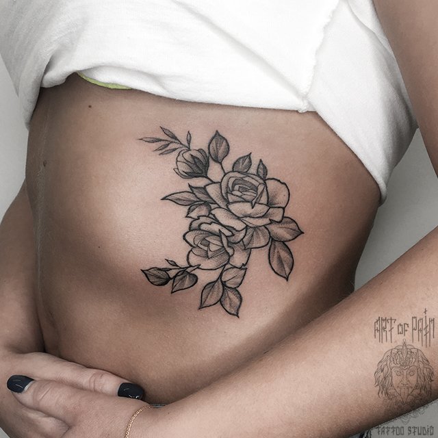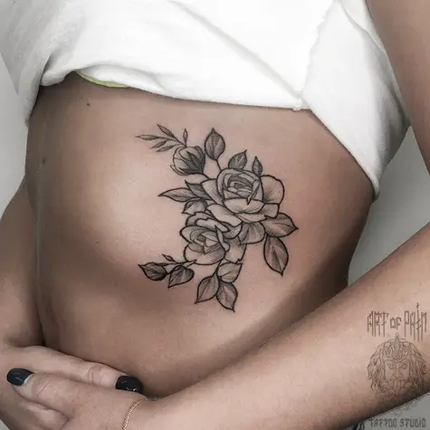 Татуировка женская графика на боку розы 2675