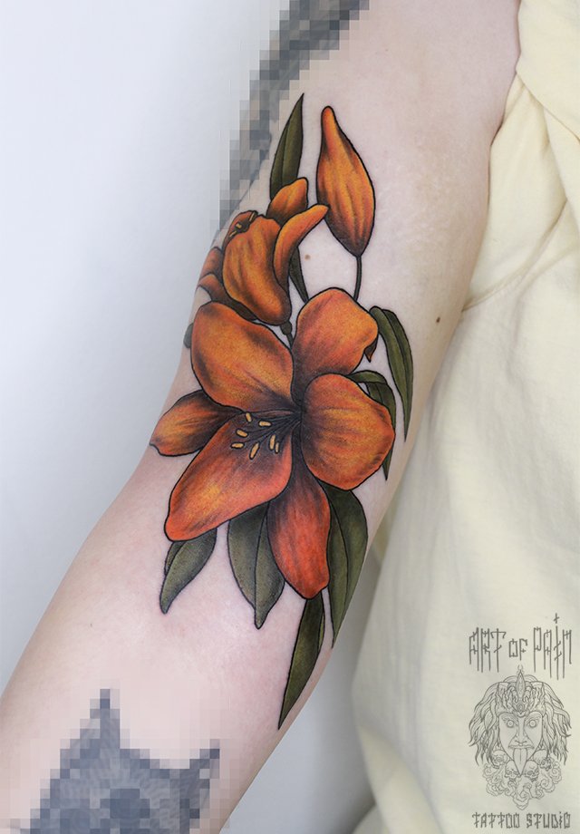 Татуировка женская нью-скул на плече лилия (Анастасия Родина) 2692
