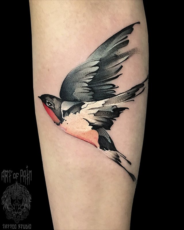Татуировка женская реализм на предплечье ласточка 2700