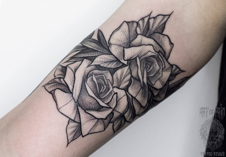 Татуировка женская графика на руке розы 2767