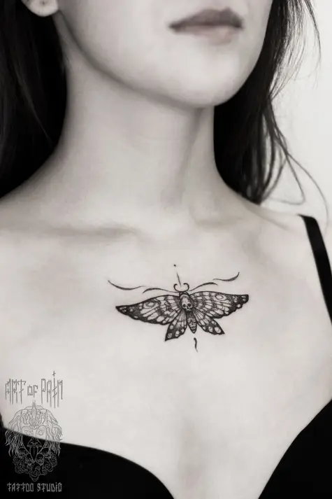 Татуировка женская графика на груди мотылек 2779
