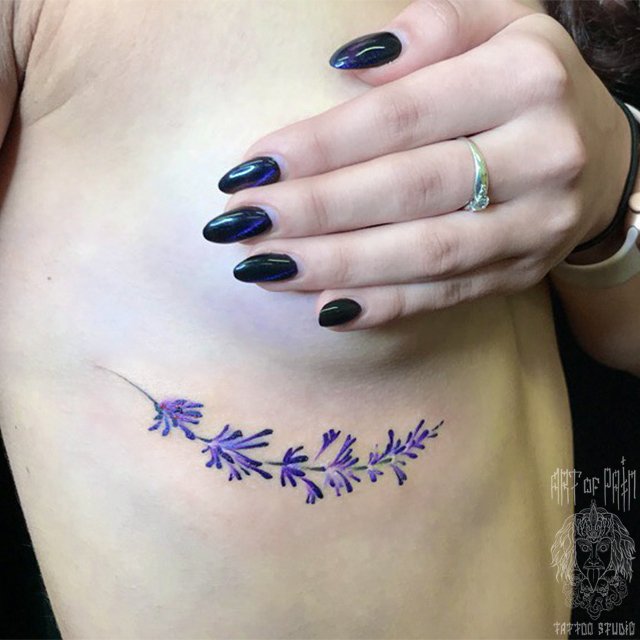 Татуировка женская реализм на боку цветок 2822