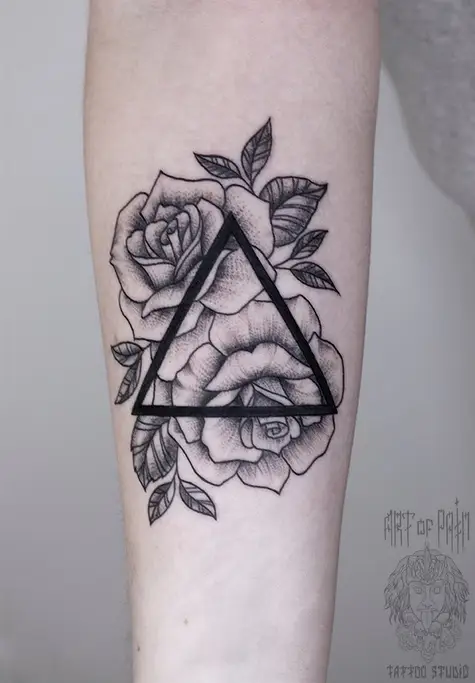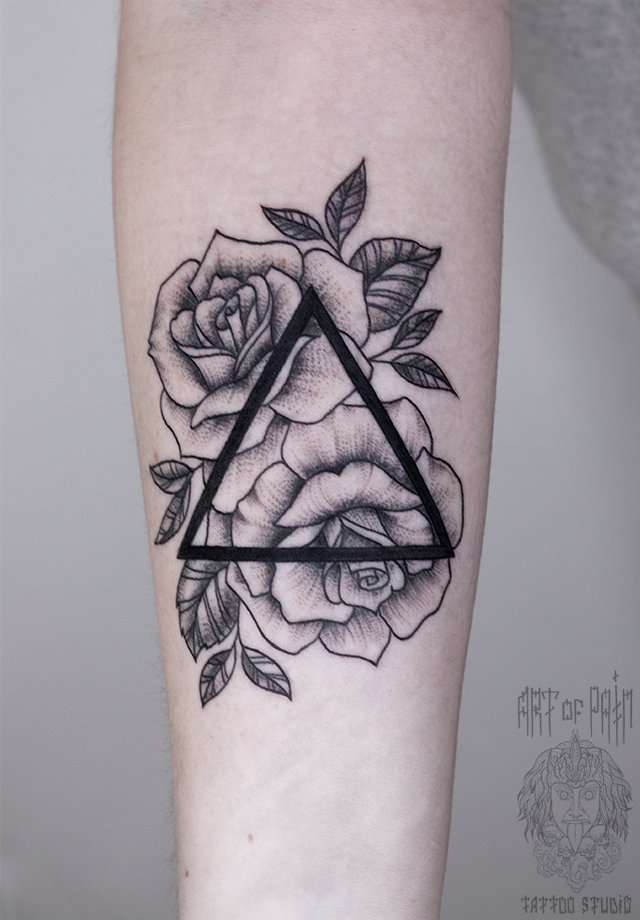 Татуировка женская графика на предплечье треугольник и розы (Анастасия Родина) 2836