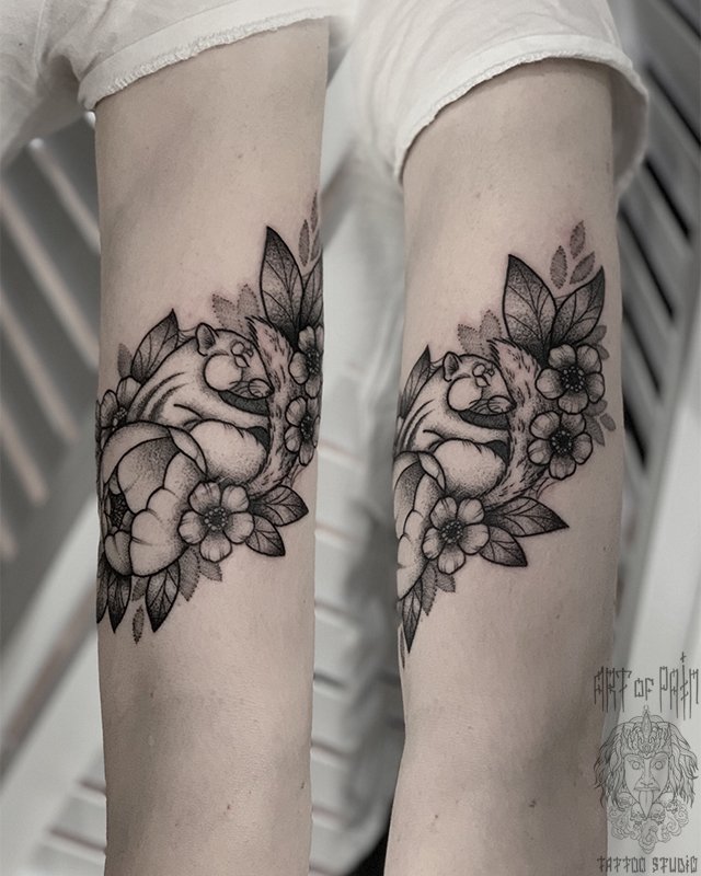 Татуировка женская графика на плече барсук в цветах 2931