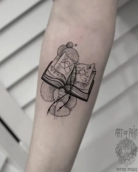 Татуировка женская графика на предплечье книга 2948
