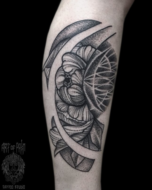 Татуировка женская графика на голени узор 3034