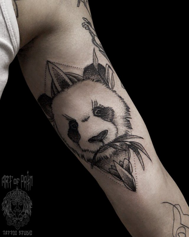 Татуировка женская графика на руке панда (Юрий Хандрыкин) 3044