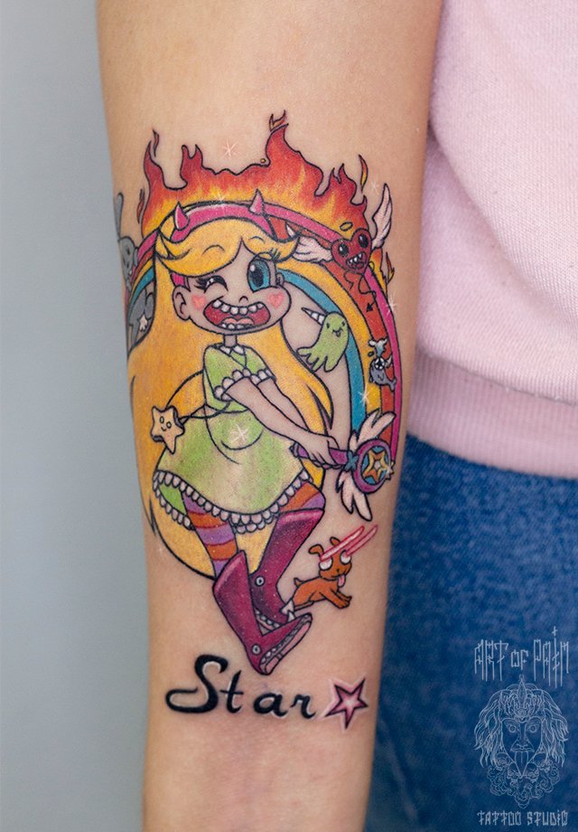 Татуировка женская нью-скул на предплечье стар (Анастасия Родина) 3078