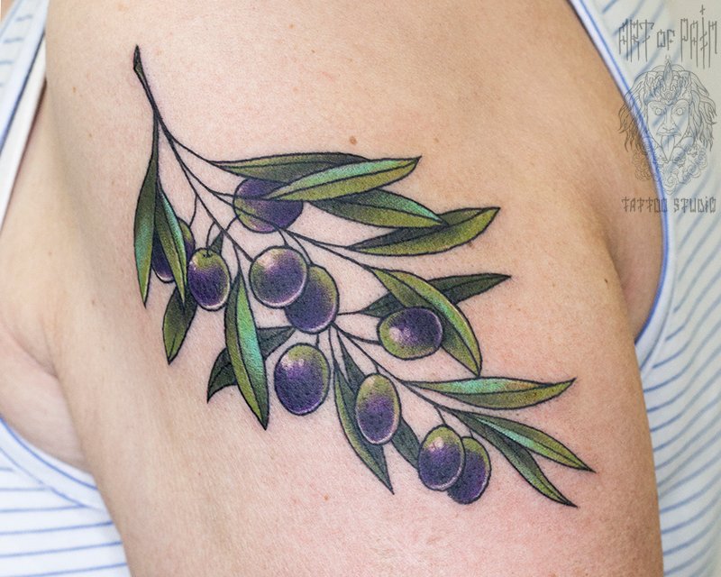 Татуировка женская нью-скул на бедре олива (Анастасия Родина) 3100