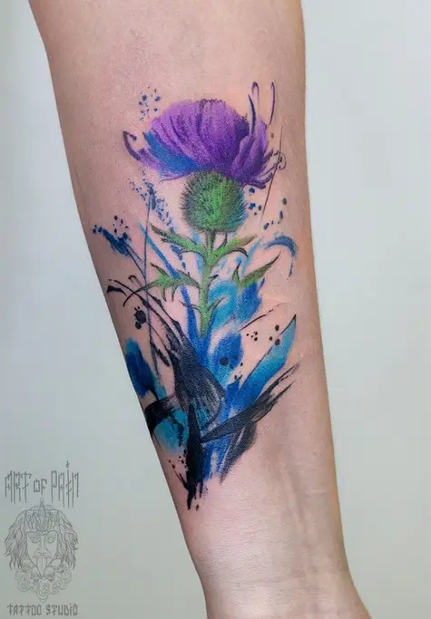 Татуировка женская акварель на предплечье чертополох (Анастасия Родина) 3148