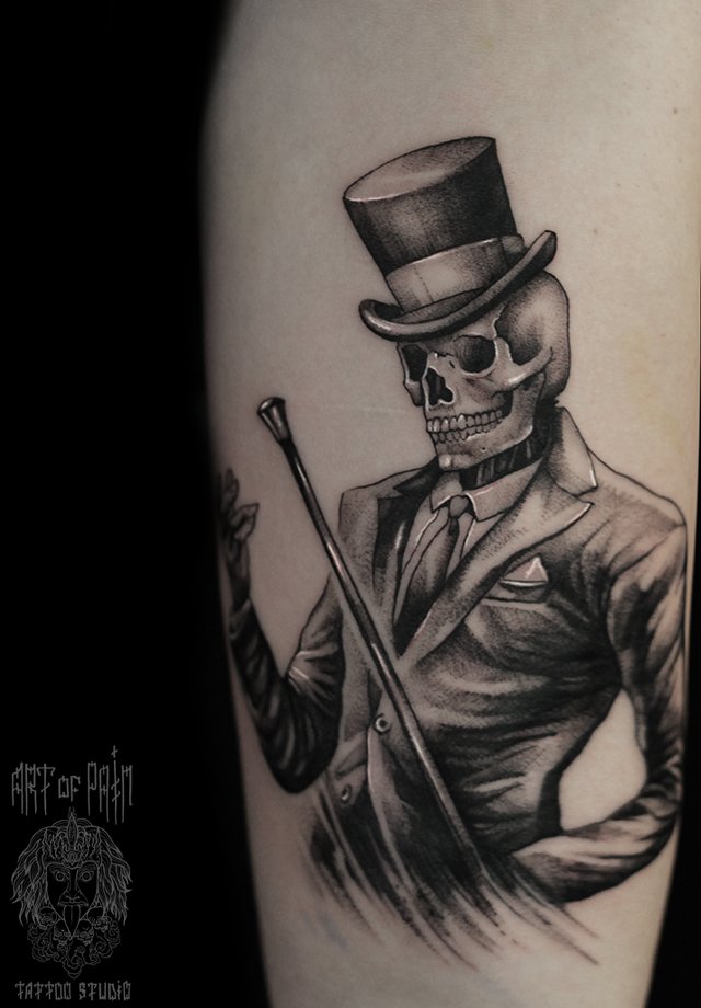 Татуировка женская графика на голени скелет 3241