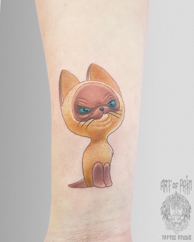 Татуировка женская нью-скул на предплечье котенок Гав 3245