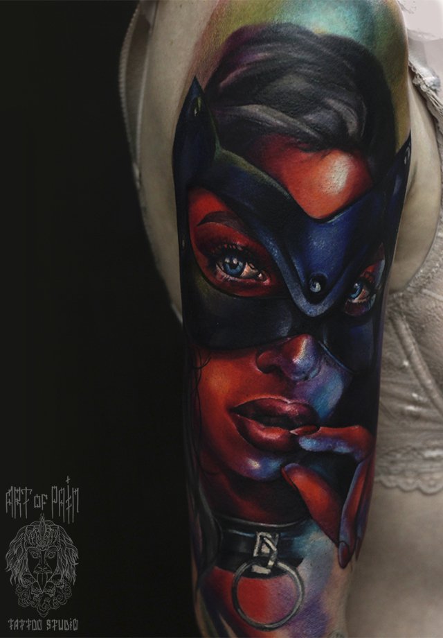 Татуировка женская реализм на плече девушка 3269
