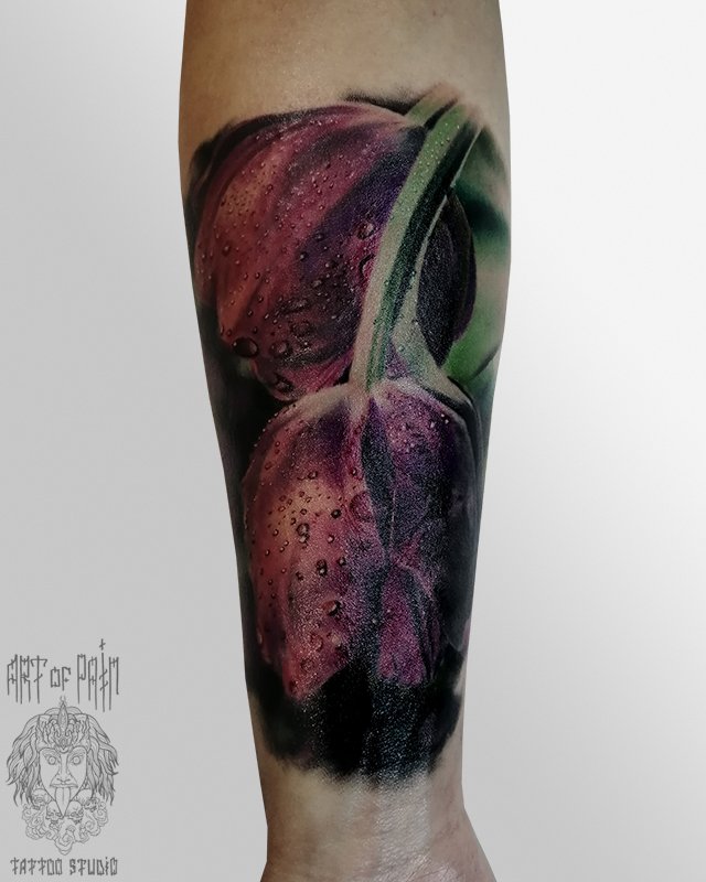 Татуировка женская реализм на предплечье тюльпаны 3345