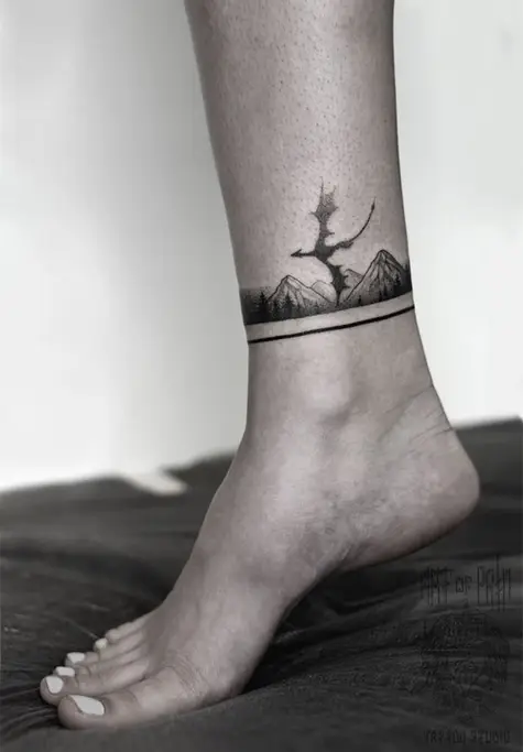 Татуировка женская графика на щиколотке дракон 3678