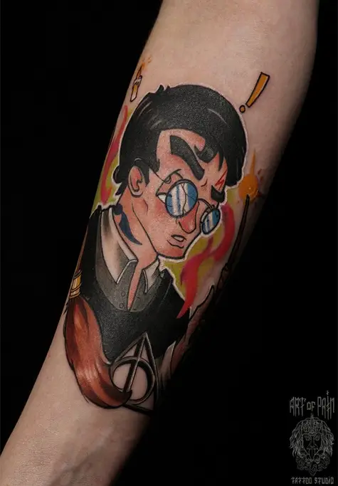 Татуировка женская нью-скул на предплечье гарри поттер 3685