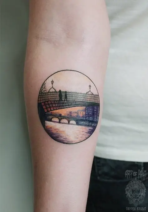 Татуировка женская нью-скул на предплечье город (Анастасия Родина) 3693