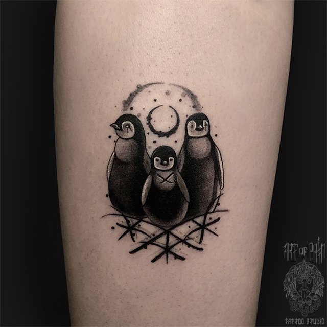 Татуировка женская графика на голени пингвины (Анастасия Юсупова) 3706