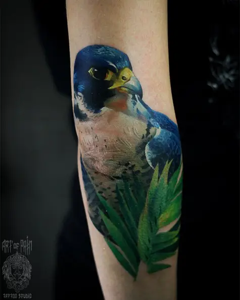 Татуировка женская реализм на предплечье сокол 3721