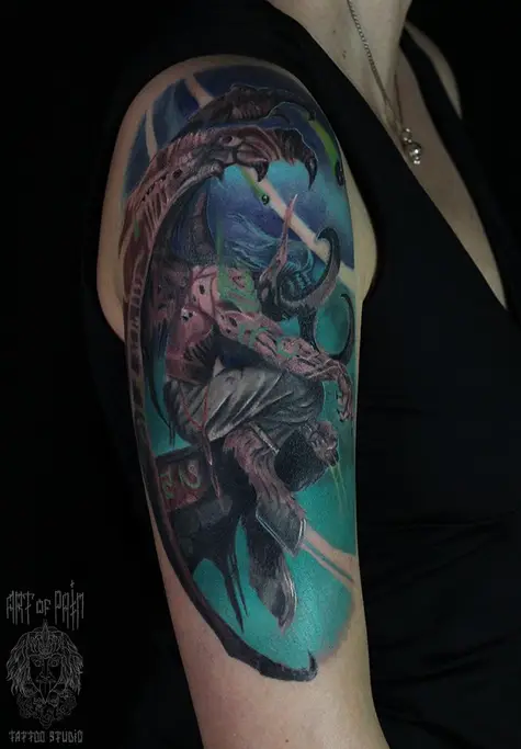 Татуировка женская фентези на плече демон 3762