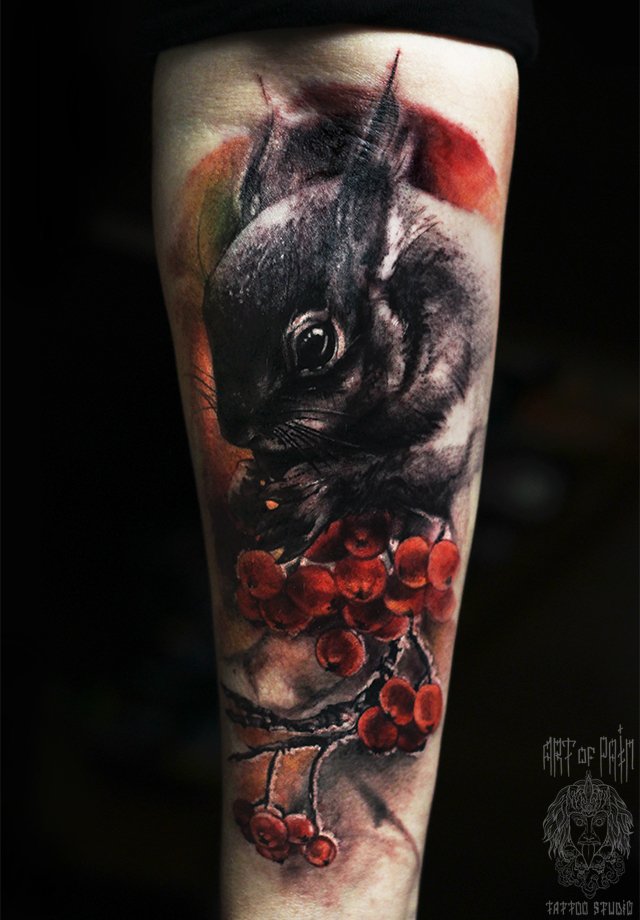 Татуировка женская реализм на предплечье белка 3763