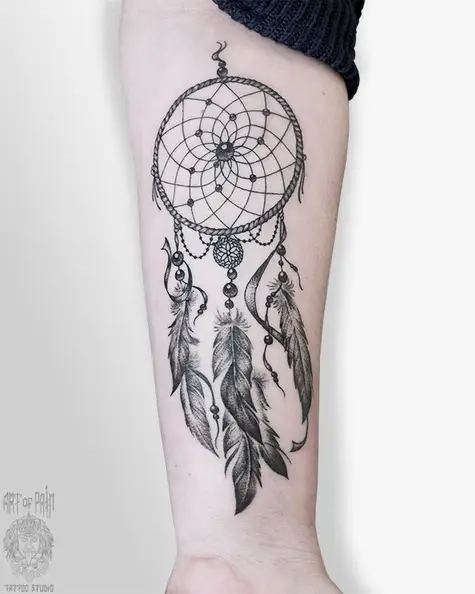 Татуировка женская графика на предплечье ловец снов (Анастасия Родина) 3773