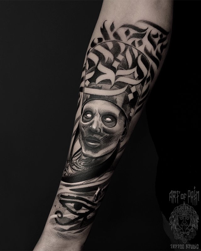 Татуировка женская графика на предплечье мумия (Анастасия Юсупова) 3864