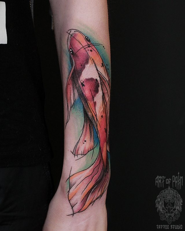 Татуировка женская акварель на предплечье рыбка (Анастасия Родина) 3942