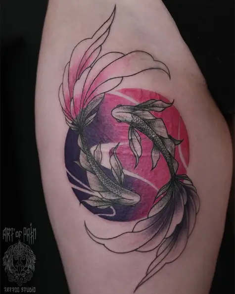 Татуировка женская графика на бедре две рыбки (Анастасия Родина) 3995