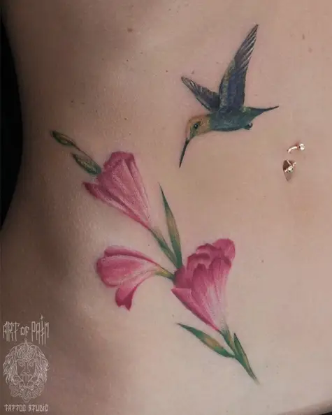 Татуировка женская реализм на животе колибри и цветок (Анастасия Родина) 3996