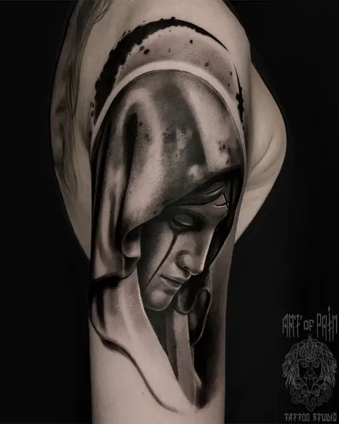 Татуировка женская black&grey на плече девушка (Анастасия Юсупова) 4040