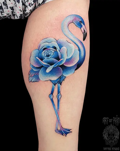 Татуировка женская нью скул на голени фламинго 4096